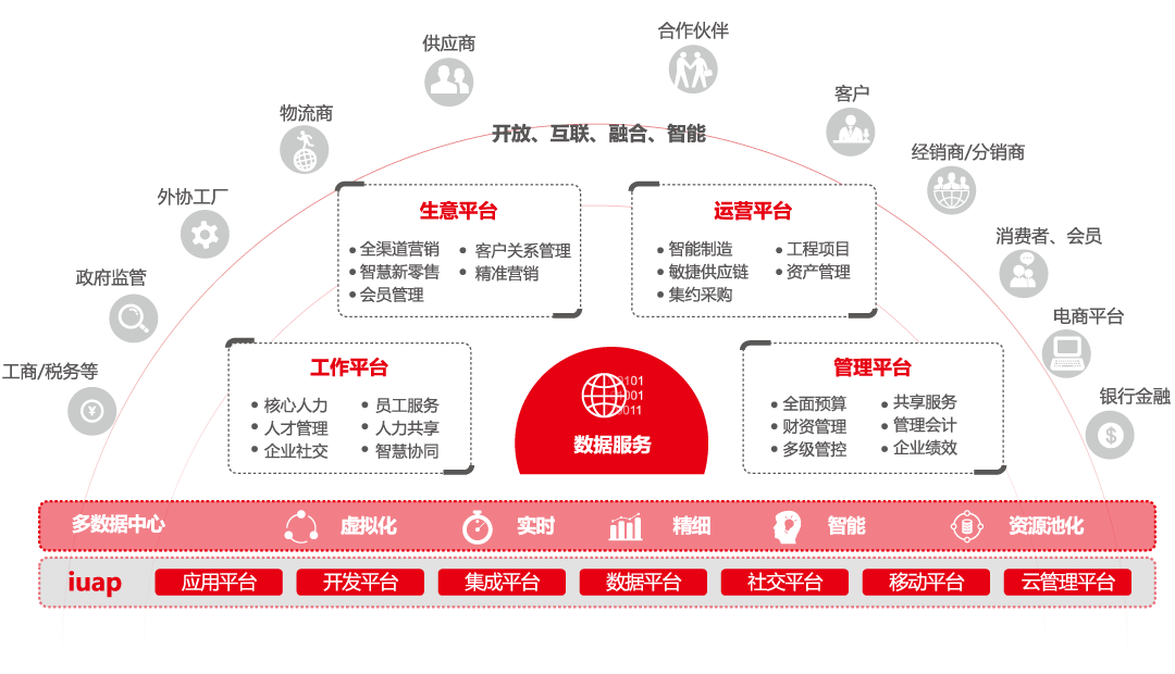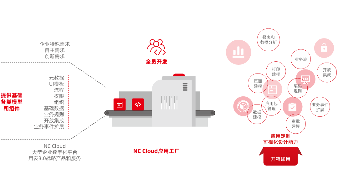 元數據、UI模板、流程、權限、組織、基礎數據、業務規則、開放集成等基礎模板和組件